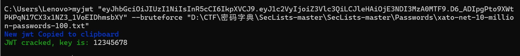 使用 myjwt 得到新的 jwt,利用字典暴破得到密码为 12345678