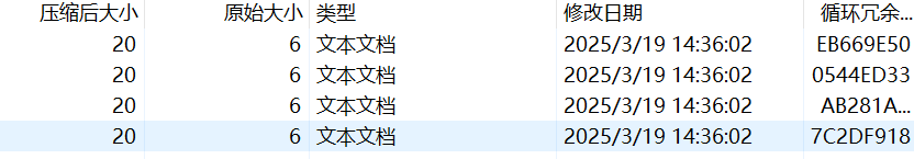发现每一个文本中都有循环冗余,原始大小都为 6 字节