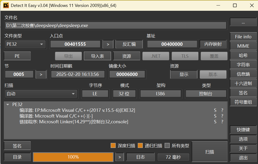 deepsleep 先拖进 die 中进行查看,没有加壳