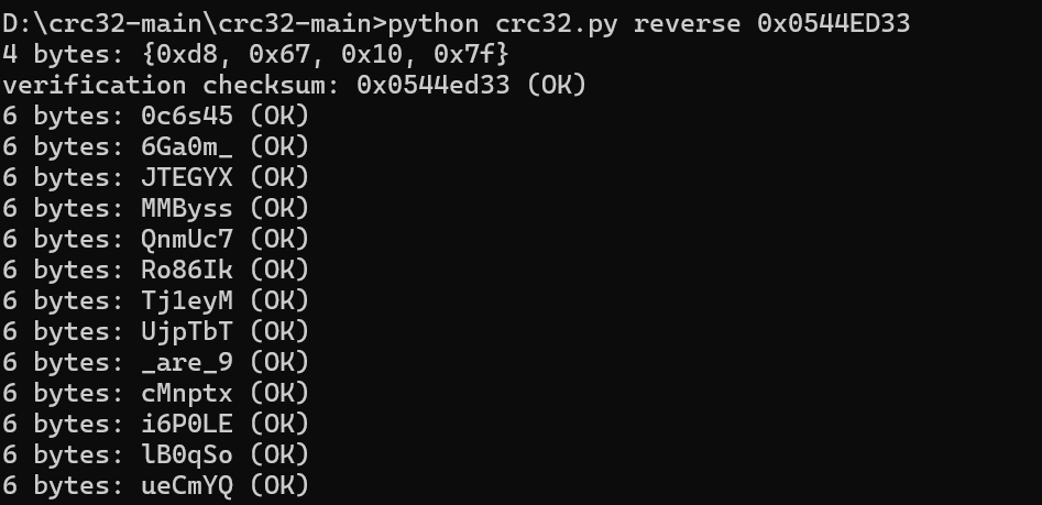 1 2 3 4 5 6 7 8 9 10 11 12 13 14 15 16 17 18 19 20 21 22 23 24 25 def decrypt_re_challenge (): xor_key = b'\x04' * 16 xmm230_bytes = bytes .fromhex("55484A517F73345B6C456D5B7C6D656A" ) encrypted_part2 = b'C[whAaTy' decrypted_part1 = bytes ([a ^ b for a, b in zip (xmm230_bytes, xor_key)]) decrypted_part2 = bytes ([c ^ 0x04 for c in encrypted_part2]) flag = decrypted_part1 + decrypted_part2 return flag flag = decrypt_re_challenge() print ("解密后的Flag:" , flag.decode('latin1' ))